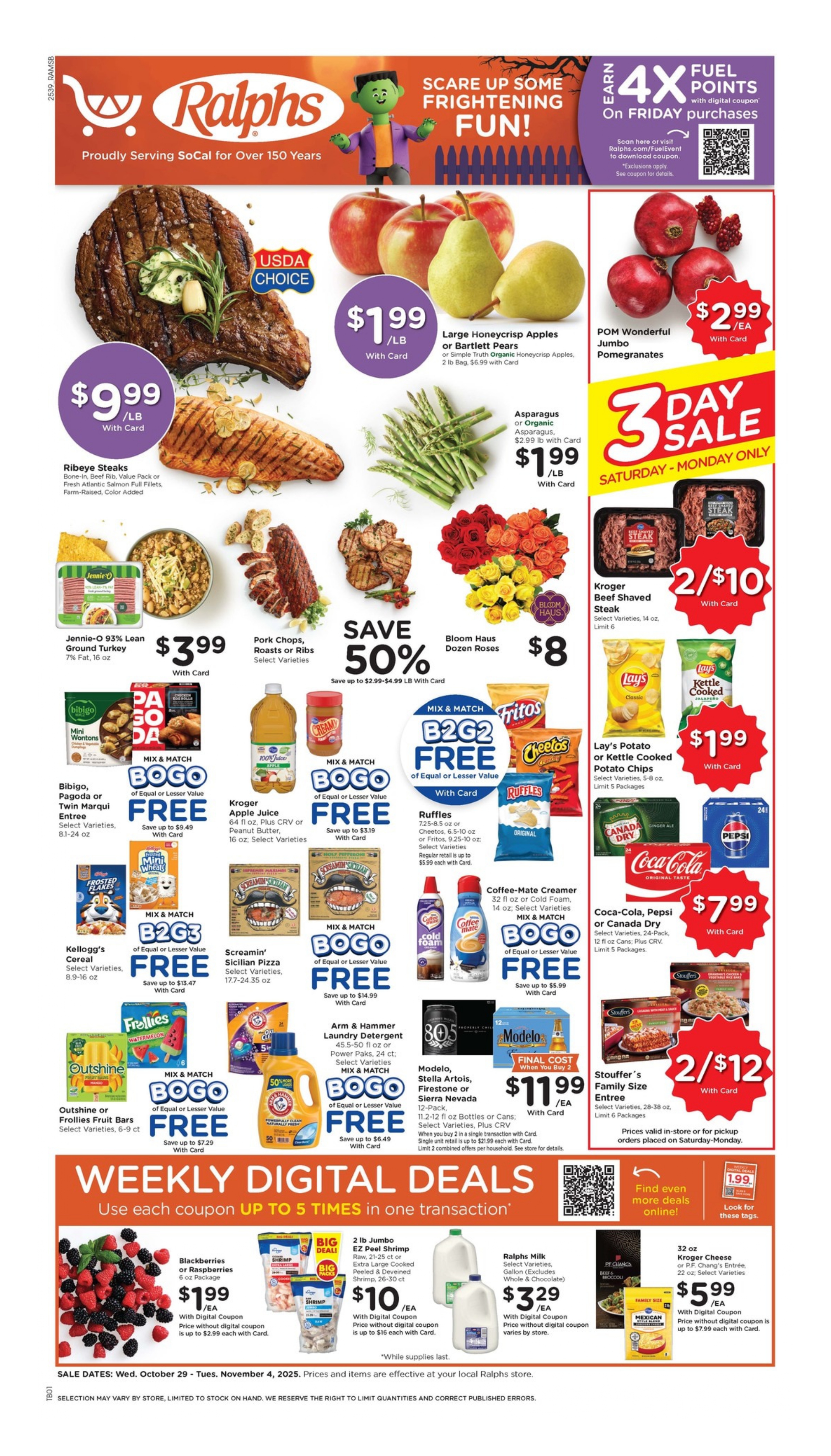 The Ralphs weekly ad Oct-29-Nov-4,2025 is a great way to find the best deals on groceries, household items, and everyday needs. Each week, Ralphs updates its ad with new discounts on fresh fruits, vegetables, meats, snacks, drinks, and more. You can view the flyer online or pick it up at your local store.